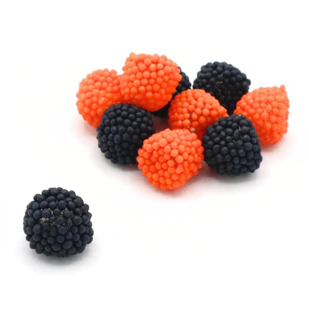 Żelki w kształcie malinek i jeżynek.