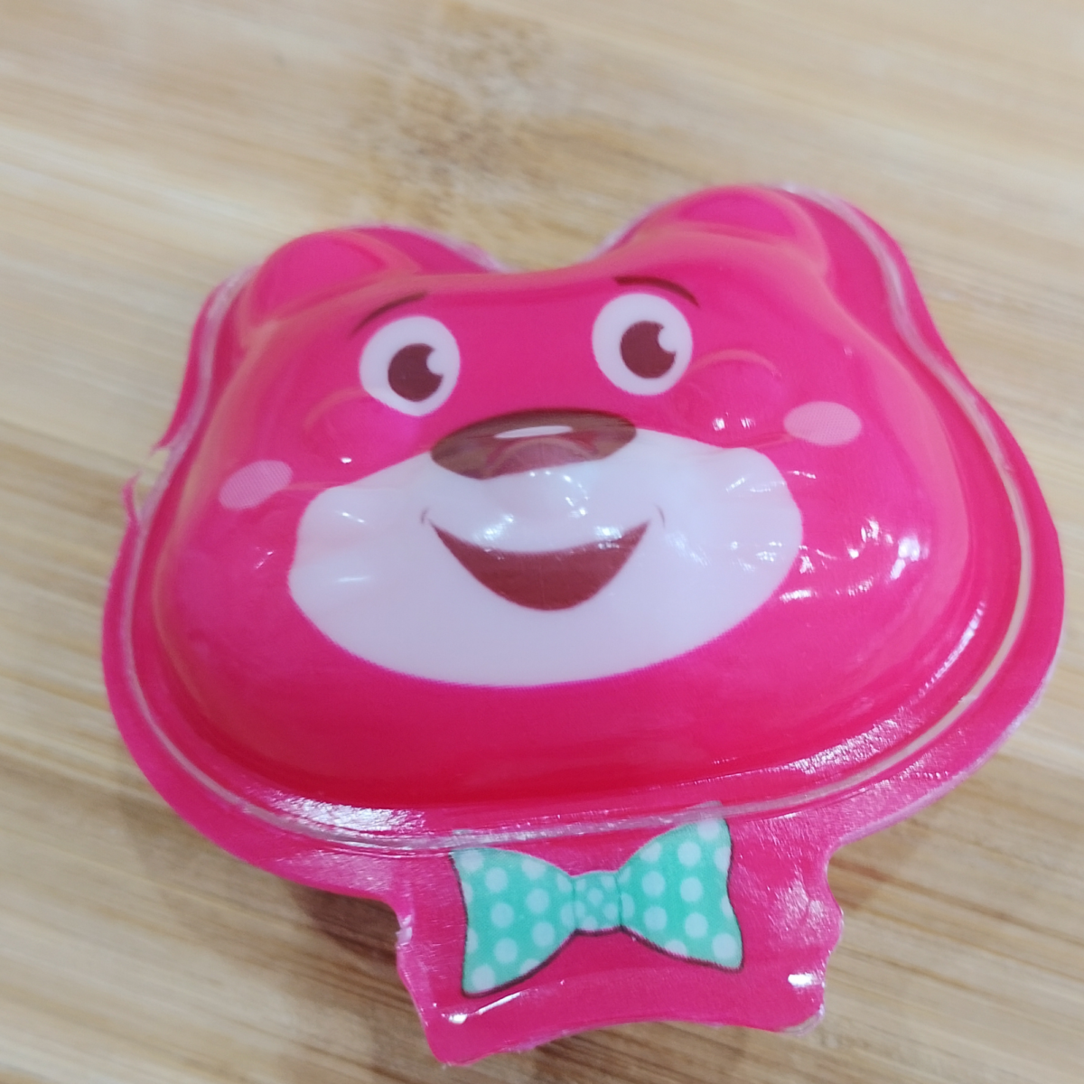 Każda żelka pakowana osobno w plastikową osłonkę.